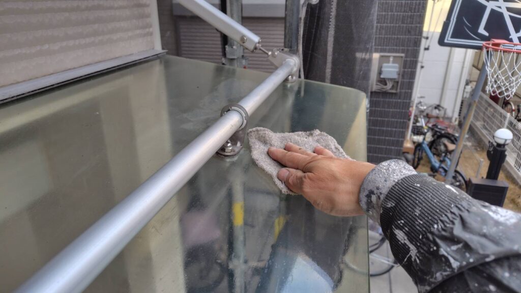 塗装だけでなく付帯部も足場がありますので拭き掃除を全般にいたします