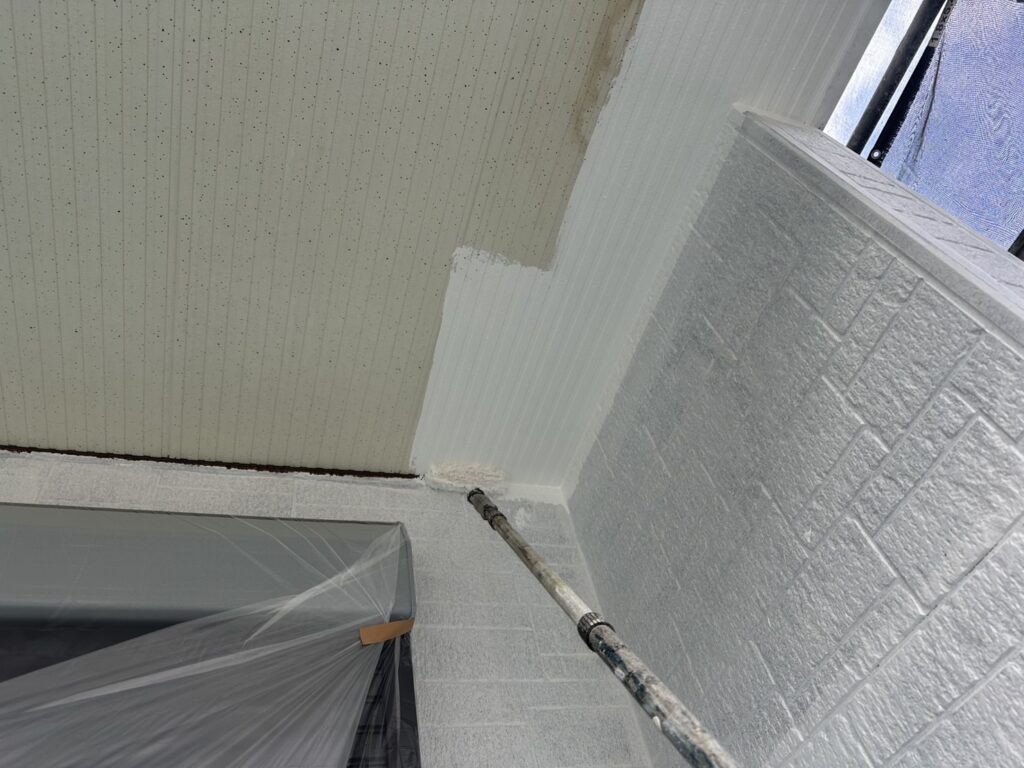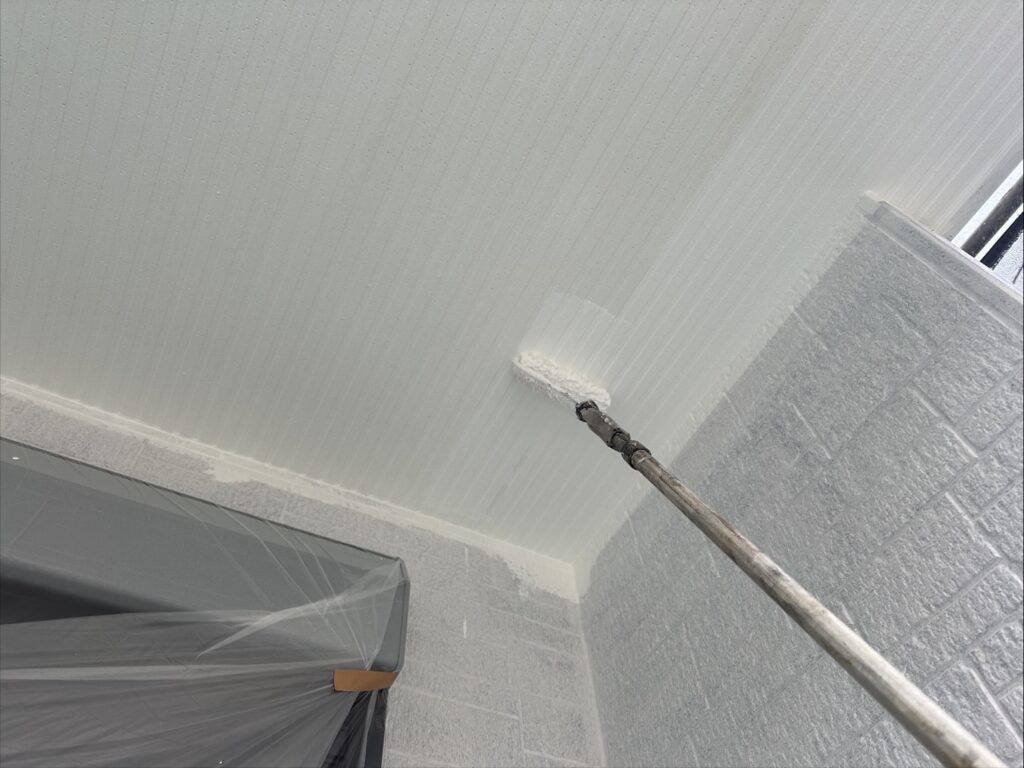 さて軒下天井やベランダの天井に使用さるらているケイカル板への塗装をやりましたので順番をかいていきますね^_^